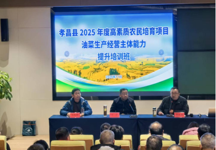 (本网讯 刘壮)11 月 17 日,由孝昌县农业农村局主办、湖北职业技术学院承办的“孝昌县2025年度高素质农民培育项目油菜生产经营主体能力提升培训班”在孝昌县农夫子教育培训基地正式开班。来自全县各乡镇的 69 名油菜种植大户、家庭农场经营者及合作社骨干参加培训。孝昌县农业农村局党组成员、副局长丁力,湖北职业技术医学院副院长王光耀等出席开班式。开班仪式由孝昌县农广校校长、农业农村局科教股主任李文书主持。