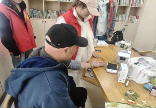“大爷,您的血压稍微偏高,平时要注意少盐少油,饭后多散散步,记得定期监测哦。”“奶奶,您的血糖很稳定,继续保持现在的饮食习惯就好。”面对每一位老人,志愿者们都放慢语速、细致叮嘱,用专业与耐心消解老人们的健康焦虑。不少老人笑着感慨:“这些孩子真贴心,不仅帮我们测身体,还讲了好多养生小知识,太暖心了!”
