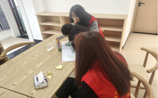 在社区的活动桌旁,志愿者们围坐成圈,化身孩子们的“周末伙伴”。一边耐心辅导课业,细致讲解作业难题,梳理知识脉络;一边带着孩子们开展绘画、手工等趣味活动,用彩笔和折纸点亮童真创意。