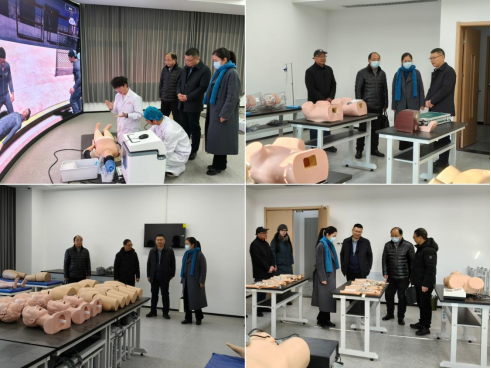 胡忠文一行实地考察了学校南区产教融合大楼临床技能考核培训基地、东区药品购销室、中药标本室及药植园等。在临床技能考核培训基地,依次参观了情景化急救中心、妇产科、儿科、诊断、外科、穿刺模拟、数智临床思维等现代化专业实训室,以及配备完善的OSCE考站。在情景化急救中心,考察组现场观摩了心肺复苏模拟操作训练,详细了解了医学院在提高学生实践操作能力、培养临床思维及科技创新能力方面的具体举措与成效。