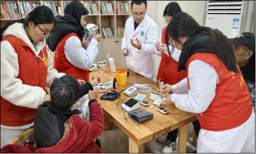 园林路社区老年居民较多,关注其健康需求是本次活动的重点。志愿者们充分发挥专业所学,耐心细致地为居民提供免费血糖、血压测量服务,并依据结果给予个性化的健康提醒和基础科普。指导老师们在现场提供专业支持,确保服务的科学性与安全性。学生们将课堂知识转化为实在的便民服务,用专业行动驱散冬日寒意,守护居民健康。