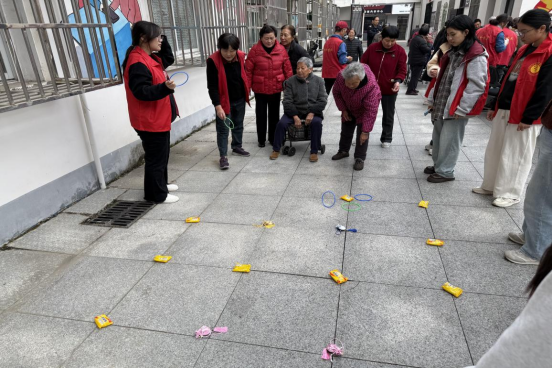 “套圈小游戏”区域欢声笑语不断。一位奶奶成功套中后,高兴地像孩子一样拍手:“哈哈,套中啦!”,并得意地向大家展示自己赢得的奖品。简单的游戏让老人们重拾童趣,现场其乐融融。