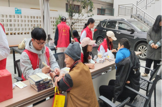 活动现场气氛热烈,暖意融融。健康体检区内,志愿者黄学梅为奶奶测出血糖偏高后,俯身说道:“奶奶别担心,只是稍微高一点点,平时注意饮食加强运动就好。”这温馨一幕正是整个服务区的缩影,志愿者们更专注于耐心解读和健康指导,引导老人们科学关注自身健康。